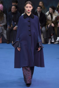 У моді стримані класичні силуети: до чорнильно-синім двобортного пальто підійде розкішний червоний, блакитний, білий або бірюзовий картатий палантин. Класична шотландська клітка прикрашає і самі вироби – просторі накидки-пончо і світло-волошкові свінгери з коротким широким рукавом, суворі синьо-сірі приталені тренди і темні бушлати з ледь помітним чорним або сірим малюнком.