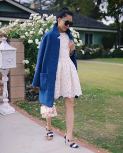 Ефектне пальто-кокон волошкового кольору оверсайз підійде як платиновим блондинкам, так і млосним брюнеткам або дівчатам з вогненно-рудим волоссям. Яскравий об’ємний шарф, вдало підібраний під приголомшливе волошково-синє пальто, модні кросівки і потерті джинси-бойфренди – стильний міський лук готовий! Вільні накидки, застібаються на блискавку, прямі брюки, облягаюче плаття або спідниця-олівець – все, що потрібно для образу доглянутою ділової леді.