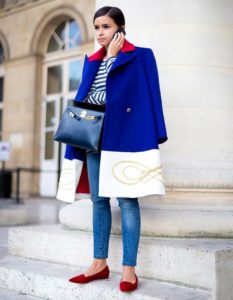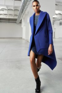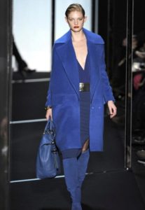 Дівчатам з широкими стегнами варто придивитися до трапецієподібним накидкам з А-силуетом – коротким свингеру або кейпу і расклешенному від талії честерфилду відтінку ультрамарин або королівський синій.