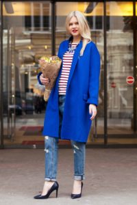 Синій колір ділиться на безліч відтінків, відповідно, будь-яка дівчина зможе вибрати пальто, яке ідеально підходить до її типу зовнішності. Так, глибокі, насичені тони візуально роблять фігуру стрункішою і витонченіше – класичне темно-синє двобортне пальто чудово виглядає на смаглявих брюнетках і шатенках. Попелястим блондинкам з блідою шкірою підійдуть яскраві, соковиті тони – волошковий, лазуровий, електрик або королівський синій.