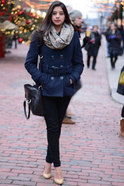 Зауваження! До темно-синьому пальто стилісти рекомендують підібрати яскраві аксесуари: об’ємний снуд або шарф, теплий палантин чи хустку з незвичайним малюнком, оригінальну шапочку, модний ремінь або сумку.