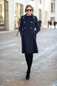 Приймаючи рішення про те, якої довжини має бути зимове або осіннє пальто синього кольору, слід орієнтуватися і на відповідну до нього одяг: