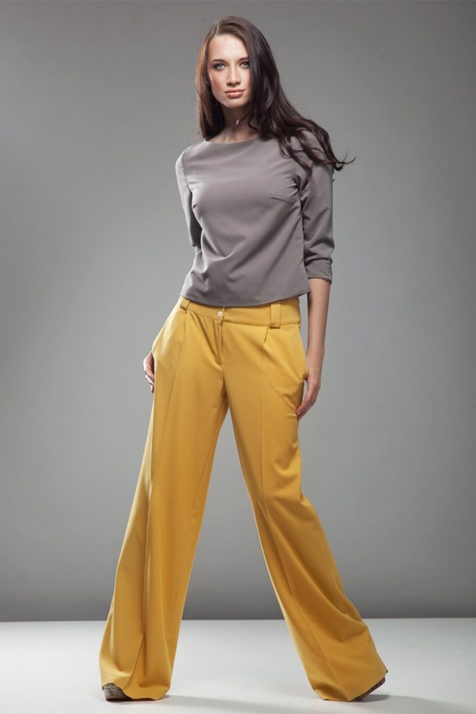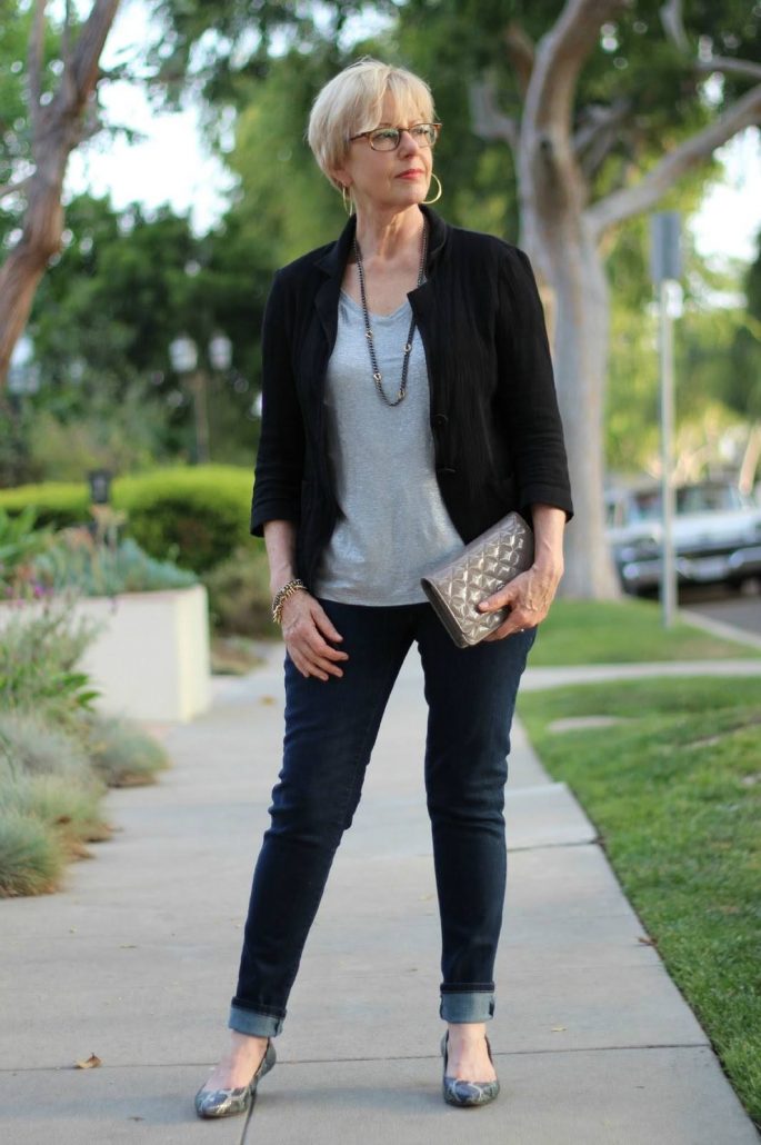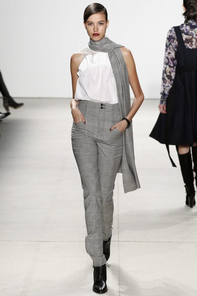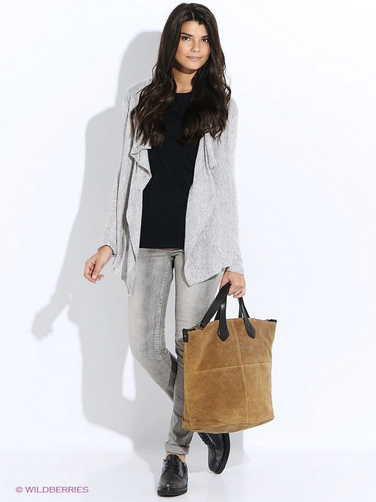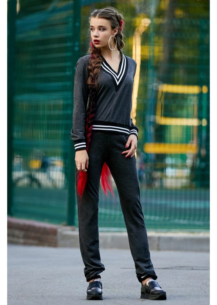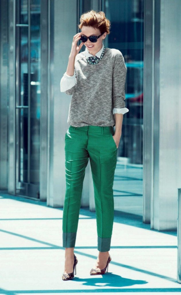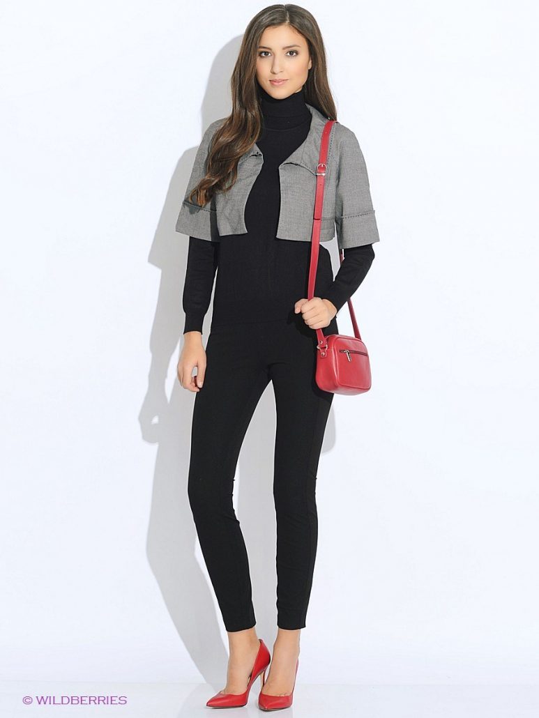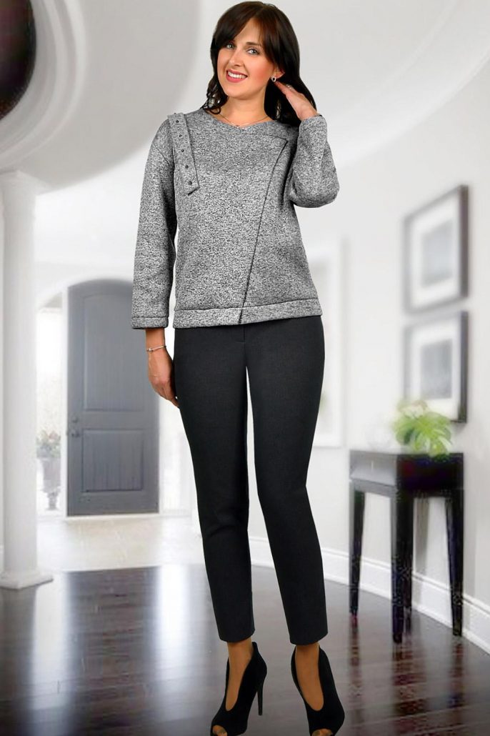 Стилісти допускають образи виключно в сірому кольорі. При виборі речей потрібно використовувати різні відтінки і фактури. З сірими брюками кольору металік буде непогано виглядати короткий пухнастий світло-сірий светр. Доповнити такий ансамбль можна невеликою сумочкою і босоніжками сіро-коричневого відтінку.