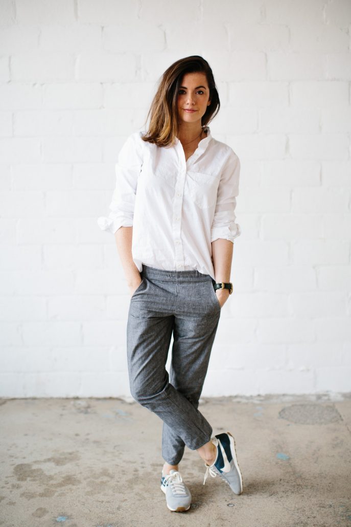 Дуже часто одяг сірого кольору вибирають офісні працівники, так як він асоціюється з поміркованістю і серйозністю. Оживити образ допоможе його комбінація з іншими відтінками. Безпрограшним в даному випадку є поєднання з чорним і білим. Гармонійно буде виглядати комбінація різних відтінків сірого.