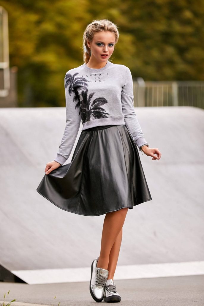 Завдяки своїй практичності, сірий часто використовують при складанні повсякденного образу. Оживити його допоможуть яскраві аксесуари. Сіра сукня буде відмінно виглядати з тонким червоним поясом, а разом з сірої спідницею можна надіти светр бузкового відтінку.