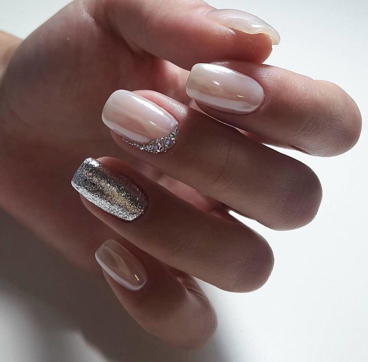 Срібний манікюр на коротких нігтях