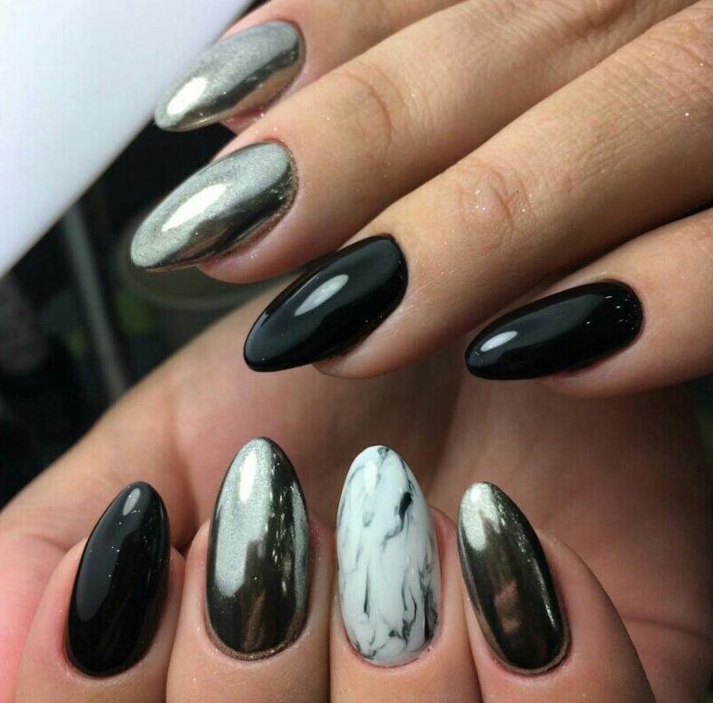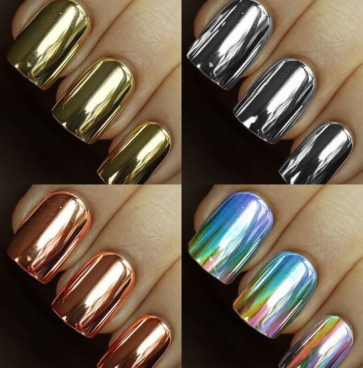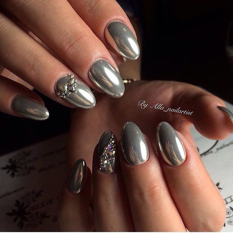 Металізовані відтінки здавна вважалися ознакою достатку і краси. У новому сезоні на піку популярності срібний манікюр, який найчастіше виконується однотонно, може прикрашатися різними елементами декору (блискітками, стразами, акриловою пудрою, малюнками). До цього стилю манікюру підійдуть нігтики різноманітної довжини. Металізований манікюр в цьому році став одним з найбільш трендових видів покриття нігтів і якщо колір золота — символ багатства, то срібний колір — ненабагато менше благородний відтінок, але з душевною глибиною, тому такий манікюр додає дівчині особливу життєвідчування і чарівність.