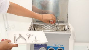Перш ніж покласти пилки в стерилізатор, їх необхідно очистити від видимих забруднень. Роблять це, промиваючи прилади під проточною водою з твердою щіткою.