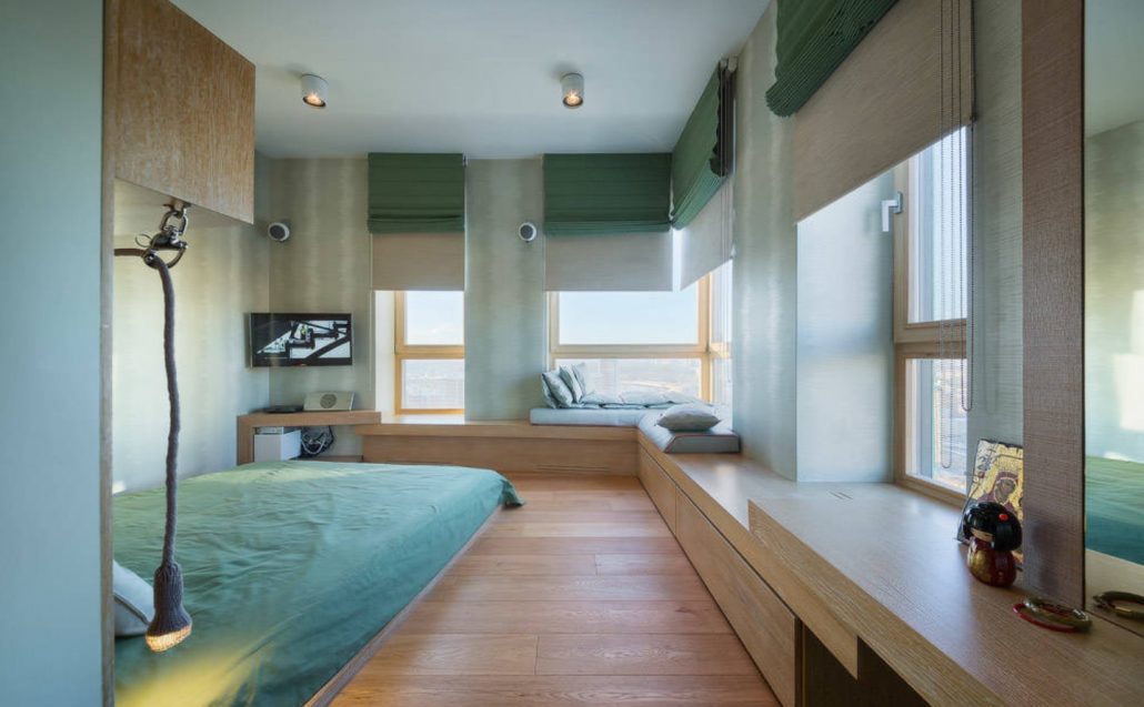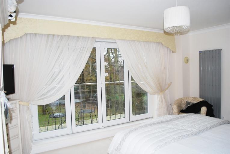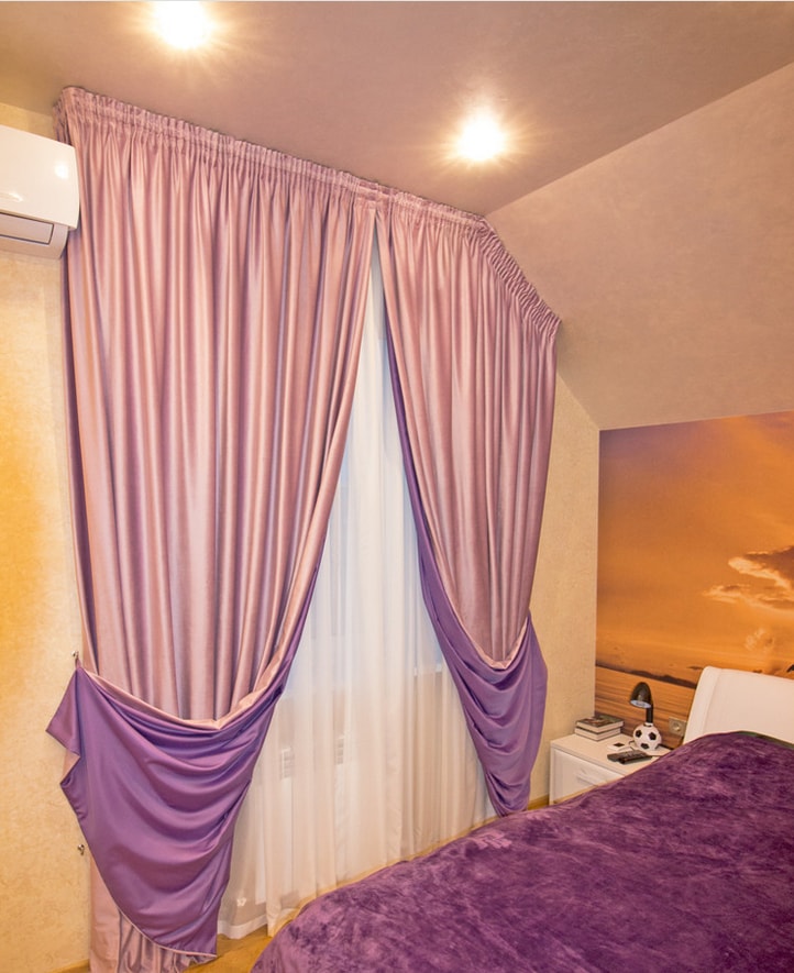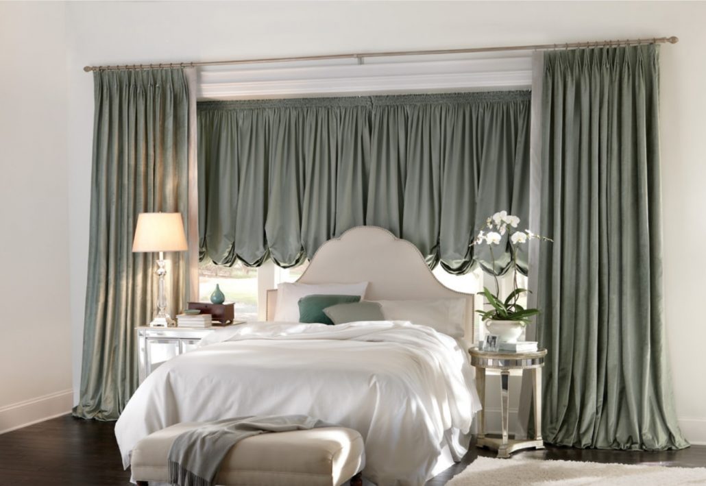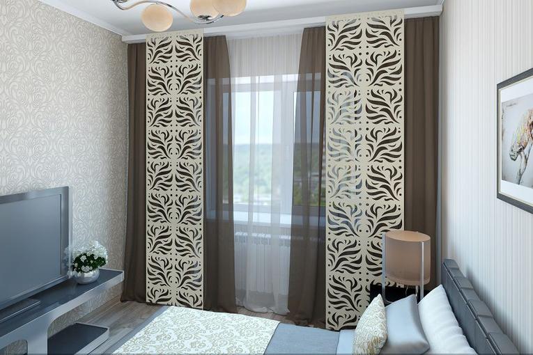 Виходячи з дизайну спальні, вони можуть являти собою одну широку штору, повністю закриває весь проріз вікна або ж складатися з декількох штор.