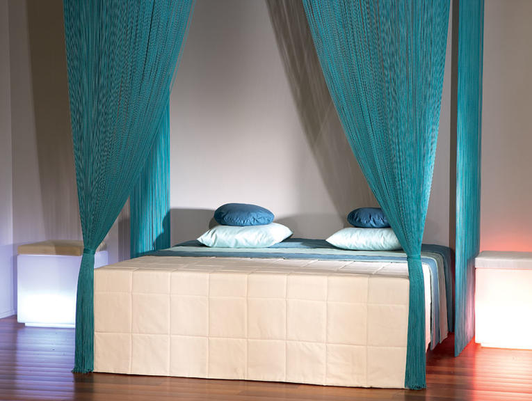 Незважаючи на те, що серпанку мають повітряну фактуру, вони непогано відбивають світло. А завдяки пластичності з неї можна створювати різні драпірування. У спальні краще всього виглядатимуть темні шенилловые нитки.