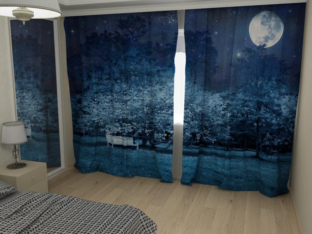 Сучасні штори в спальню 2018 з фотодруком