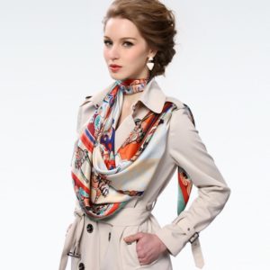 Сукня-пальто універсально і красиво виглядає практично з усіма видами хусток. Одягти можна як шовковий хустку на голову, так і мереживний хустку на шию.