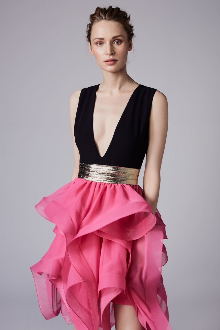 Коротке плаття з воланами виглядають в 2018 році витончено. Образу в такому варіанті притаманна відверта ніжність. Сліпучий дизайн дозволяє носити коротке плаття в якості вечірнього вбрання. Колір коротких суконь варіюється від світло-бежевого до чорного.