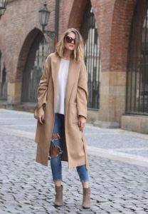 Легке демісезонне жіноче пальто світлого відтінку можна поєднувати з повітряними струмуючими спідницями-максі, рваними джинсами або з брюками з тонкої тканини.