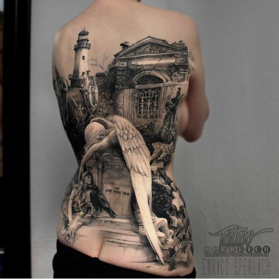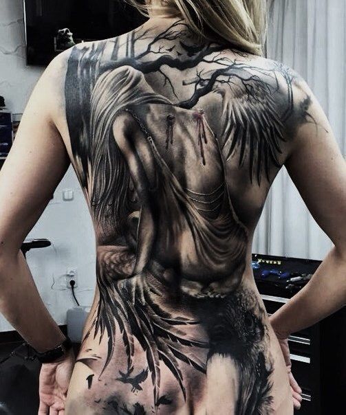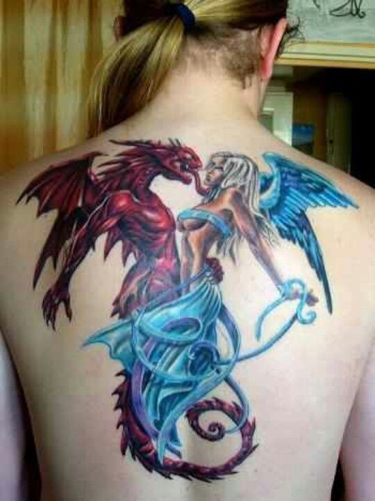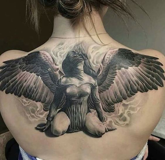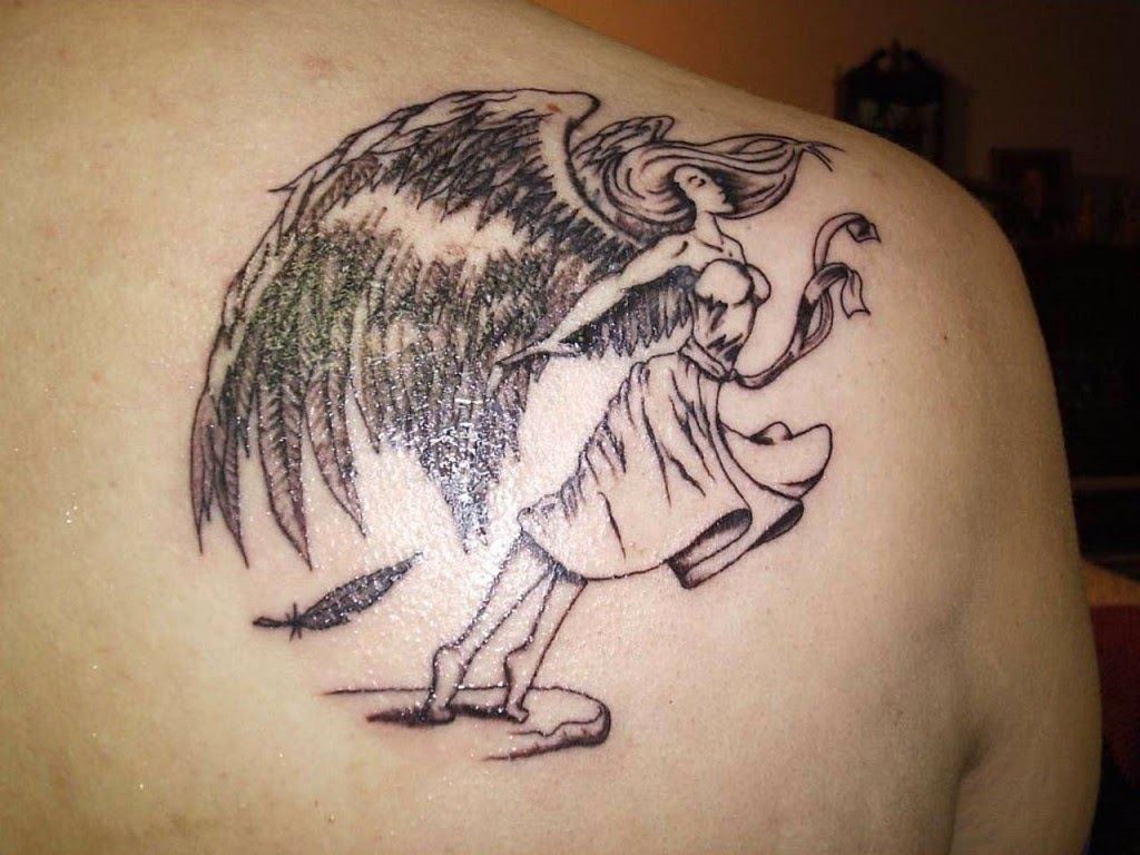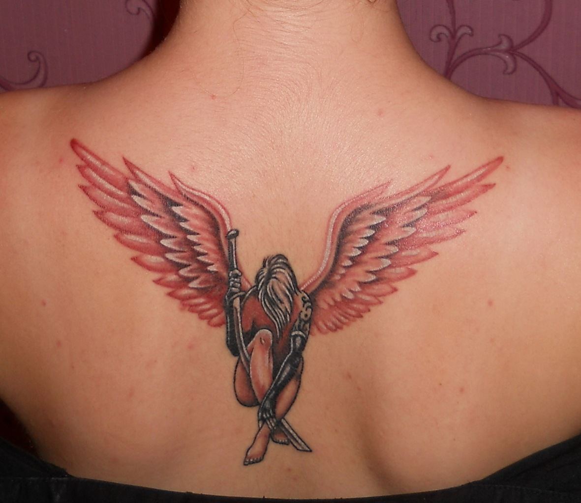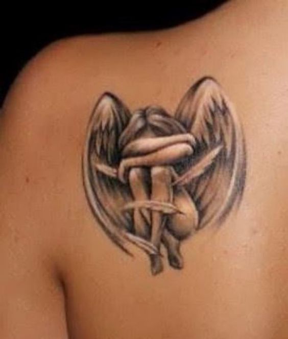Зображення на тілі ангела з розправленими крилами показує готовність дівчини до серйозних змін в житті. Якщо наколоти летить ангела, то це стане символом духовного переродження. А ось зображення занепалого ангела свідчить про розбилися надії і втрати віри в майбутнє. Пропащий ангел і ангели смерті нагадують оточуючим про те, що життя потрібно цінувати тут і зараз, бо потім буде пізно. Дівчата, які вчинили помилку на своєму життєвому шляху, роблять татуювання занепалого ангела з метою покаяння. Дивлячись на неї, вони ніколи більше не здійснять проступків.