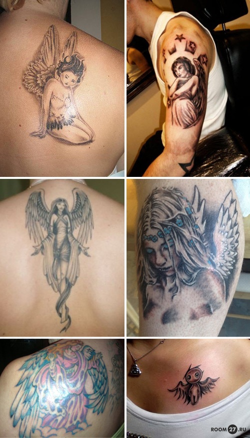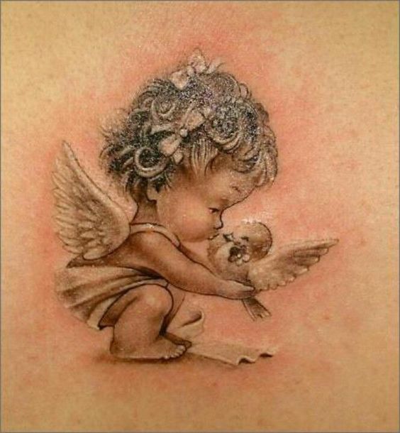 Досить широке значення має трактування татуювання у вигляді ангела. Дівчата, які духовно розвинені, добросердечны і чуйні, більше вибирають зображення маленького янголятка. Чистота думок безпосередньо виражається через милу ангельську татуювання. Але іноді татуювання маленького янголятка наноситься в зв’язку з трагічними подіями. Зневірені і нещасні матусі роблять татуювання на згадку про втрачену дитину. Звичайно, це страшна подія, але татуювання на тілі дозволяє думати про те, що вони назавжди разом із загиблим дитиною .