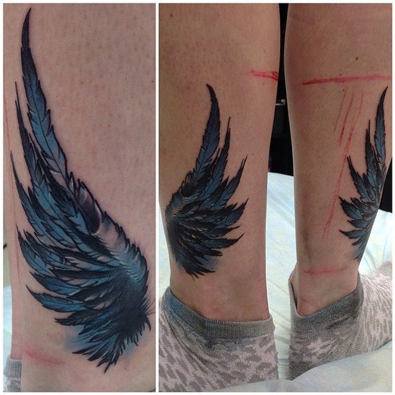 Не тільки користуються величезною популярністю два ангельські крила в якості малюнка на тілі, але і порівняно актуально зображення одного крила. Ангельське крило на тілі виглядає досить витончено. Витончені і красиві ескізи є специфічним оберегом і символізують величезну силу духу, незалежність і волелюбність.