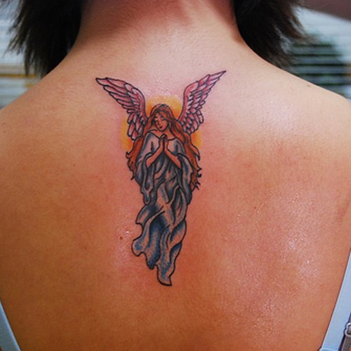 Татуювання ангела допомагає пройти через важкі життєві випробування і надавати хоча б крапельку віри в світле майбутнє. У будь-якому випадку, тату з ангелом налаштовує на позитив. Особливо якщо татуювання виконана різнокольоровими чорнилом. Кольорові ангели на жіночому тілі заворожують. Буде краще і цікавіше, якщо майстер тату скористається повною кольоровою гамою, пограє тінями і відблисками, зробить правдоподібні переходи. Це з максимальною реалістичністю передасть смислове значення татуювання ангел.