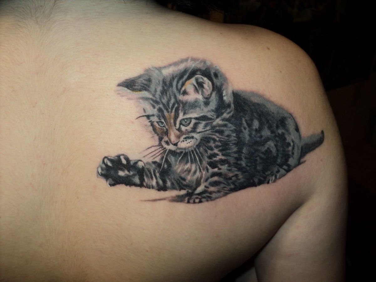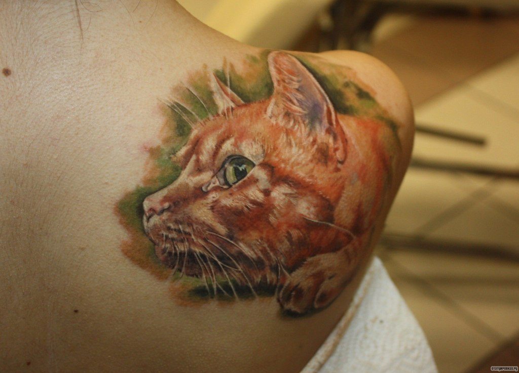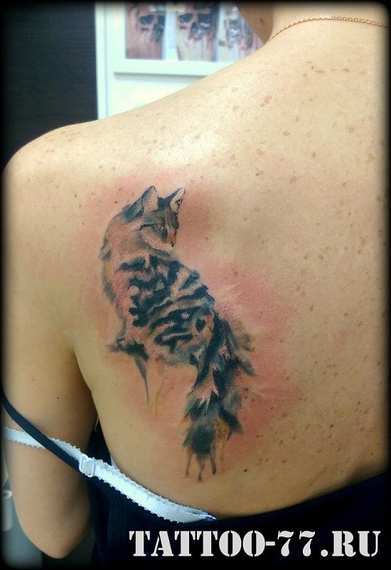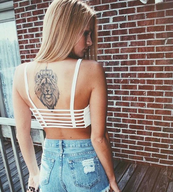 Багато татуювань на лопатці відображають життєву позицію, певні погляди і емоційний світ жінки. Тату – це девіз і те, чим живе і надихається володарка тату, знаходить своє відображення в малюнку на тілі. Багато представниць прекрасної статі уособлюють себе з сімейством котячих, так як наділені волелюбністю, самостійністю, граціозністю, гнучкістю не тільки тіла, але і мислення. Татуювання лева на лопатці надає жінці своєрідну частку левових сил і символізує про лідерські якості. Але в теж час малюнок кішечки говорить про доброту, дружелюбність і ласки.
