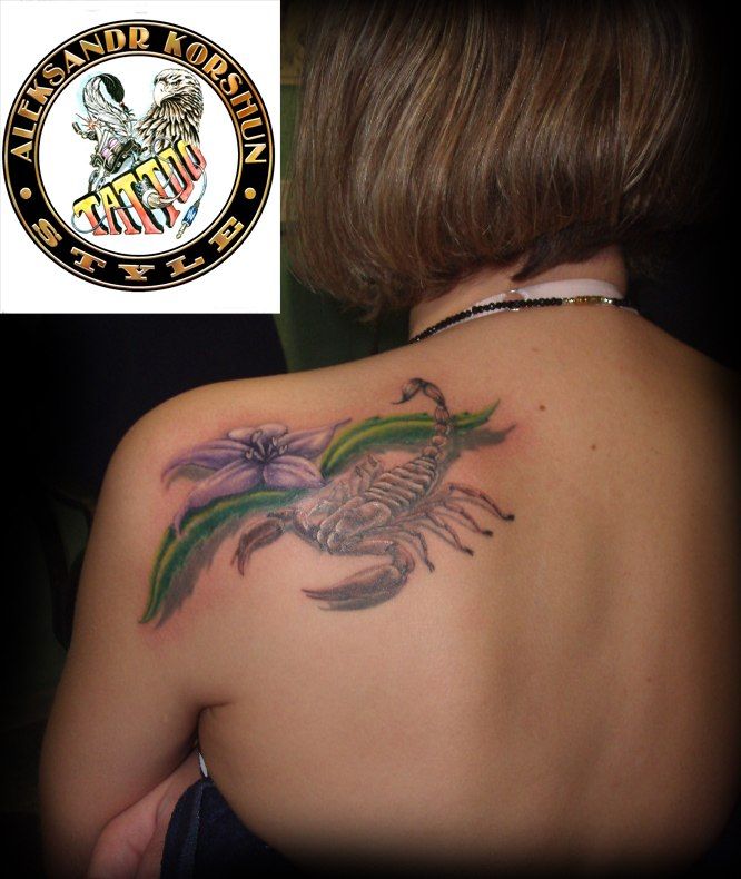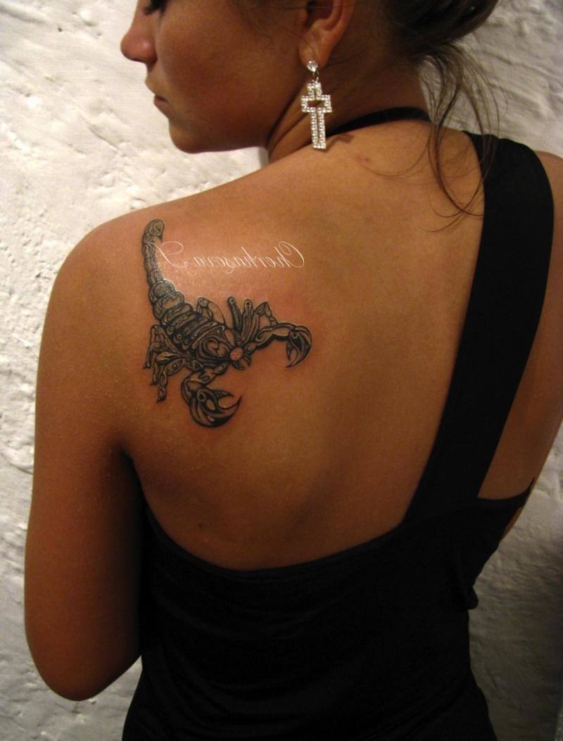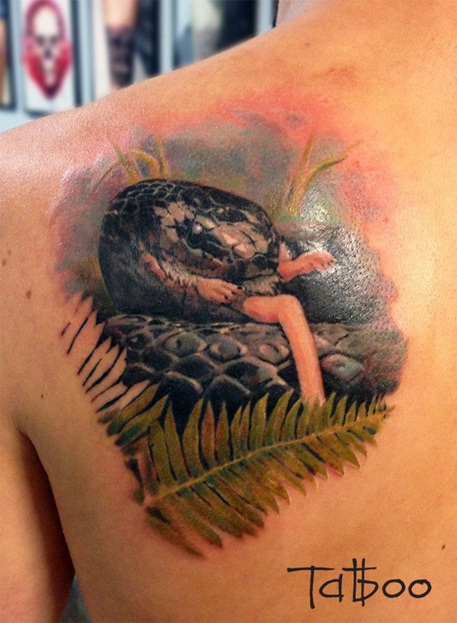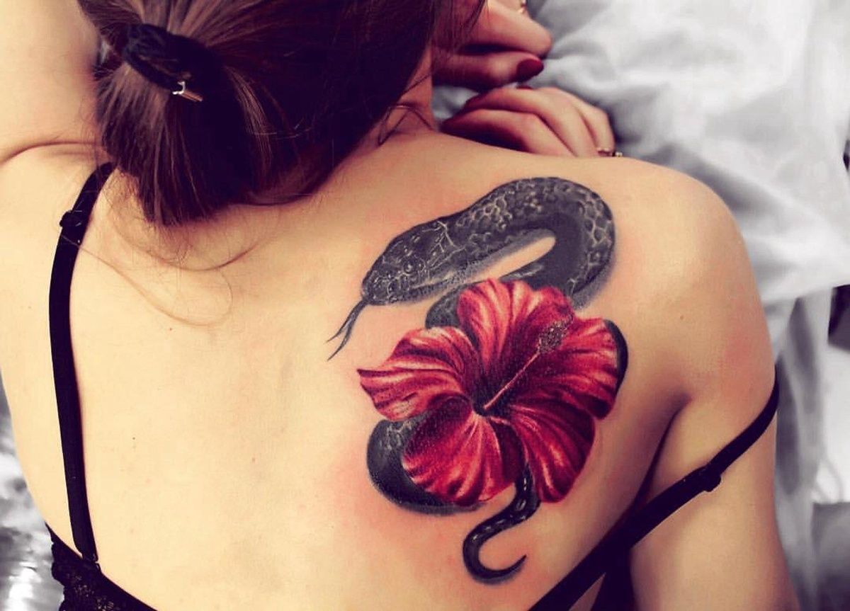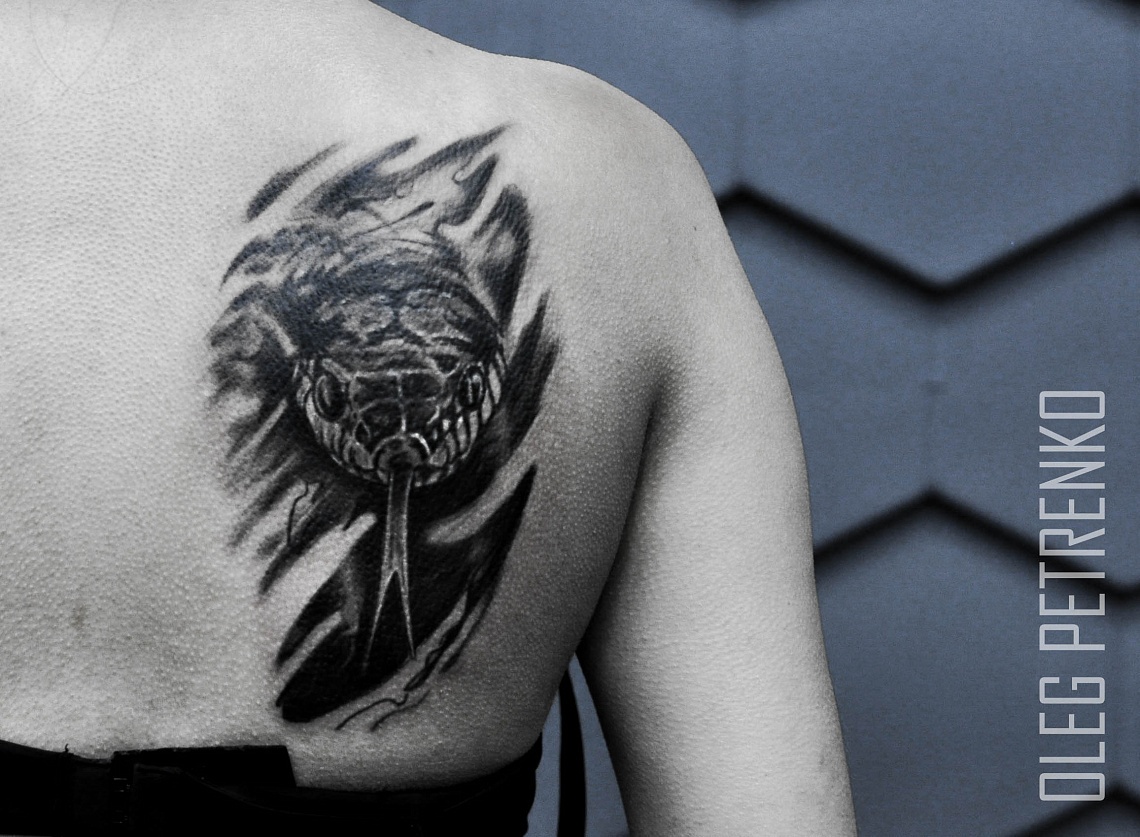 Модні тату скорпіон і змія на лопатці: жіночі ескізи