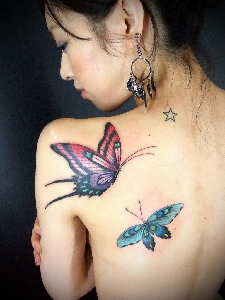 Жінки – особи непостійні, але татуювання, які вони обирають, супроводжують їх по життю. Найчастіше жінки при виборі тату на лопатку відштовхуються від власних уподобань. Але дуже рідко в цьому місці можна побачити чорний варіант татуювання. Тенденція сучасного світу така, що більше ескізів тату вибирається в кольорі. Навіть якщо основний малюнок виконаний чорним чорнилом, він все одно відтіняється якимось відтінком.