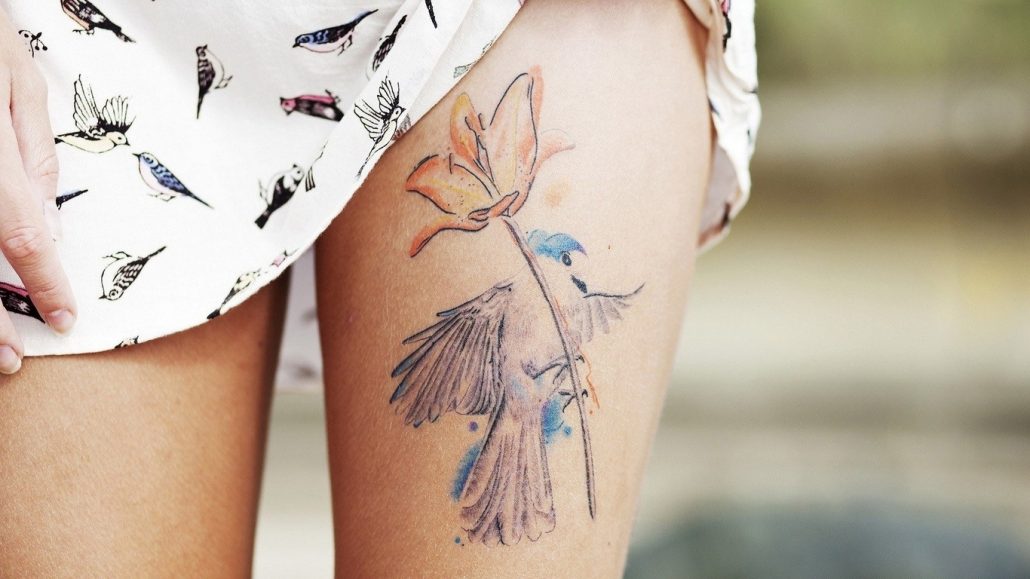 Ідеальною зоною для нанесення зображення еротичного стане стегно. Такі татуювання прекрасно виглядають на тлі мереживного білизни і при необхідності можуть бути сховані під одягом. Малюнок на стегні може бути відокремленим або становити частину композиції з татуюванням внизу живота.