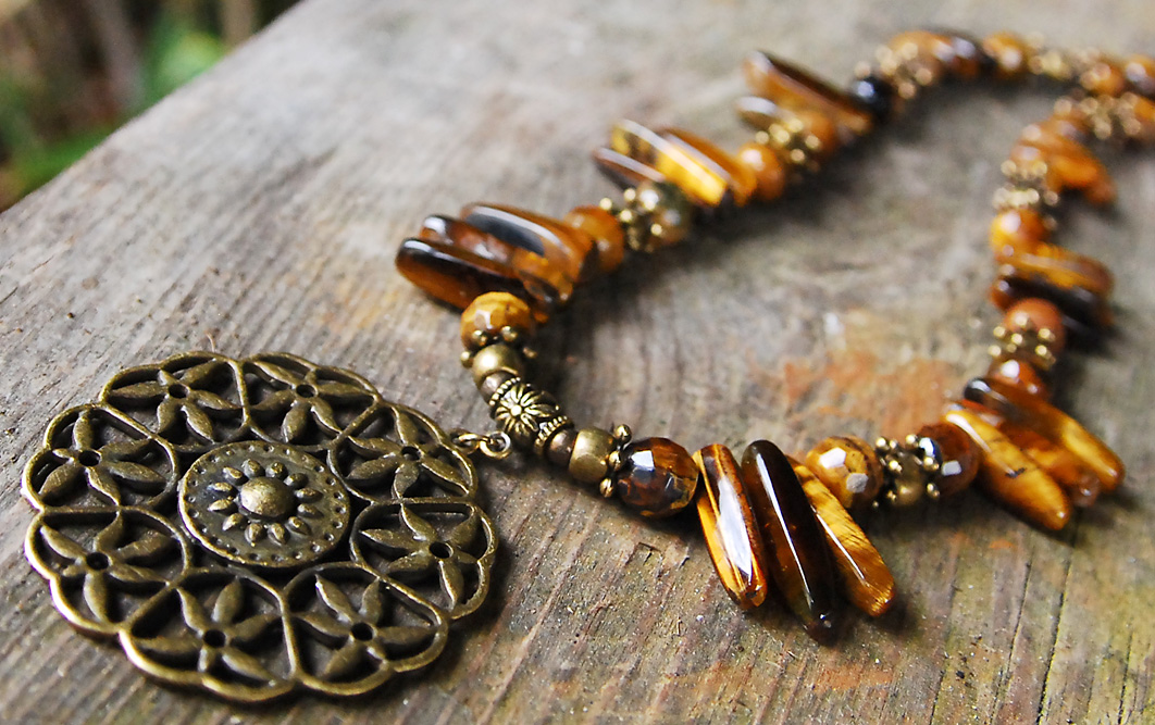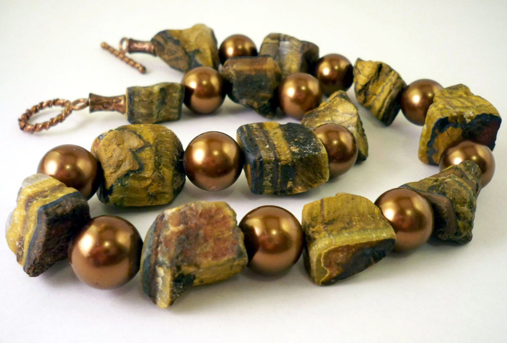 Однієї з різновидів напівпрозорого кварцу є тигрове око. Цей натуральний камінь коричневого відтінку має у своїй структурі золоті смуги. У складі мінералу присутній оксид заліза, який і забезпечує такі незвичайні вкраплення. З цієї причини він стає дуже схожим на око тигра.