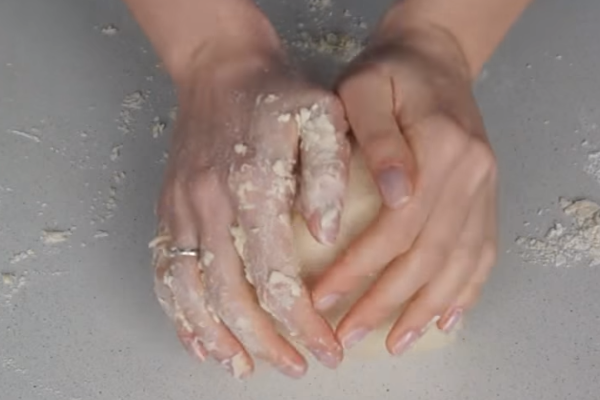 Так як тісто виходить липке, потрібно періодично змащувати руки борошном