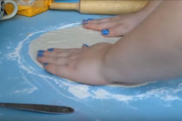 До речі, робити коло краще руками, а не качалкою, виходить набагато швидше і простіше його сформувати. І ще так роблять у справжніх піцеріях.