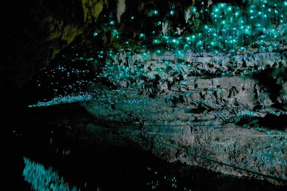 Дивовижні місця є не лише на поверхні. Спуститися під землю, де можна потрапити в вапнякові печери. Сама по собі печера відразу захоплює дух. А уявіть собі місцевих мешканців печер – світлячків. Сотні тисяч маленьких вогників створюю неповторний вигляд.