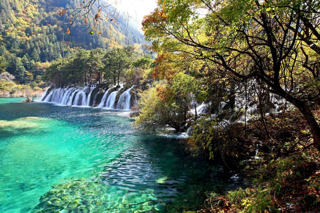 У парку можна побачити багаторівневі водоспади і різнокольорові озера. Це дивовижне місце знаходиться на півночі країни в провінції Сичуань. Національний парк складається з 3 долин, покритих широколистяними деревами.