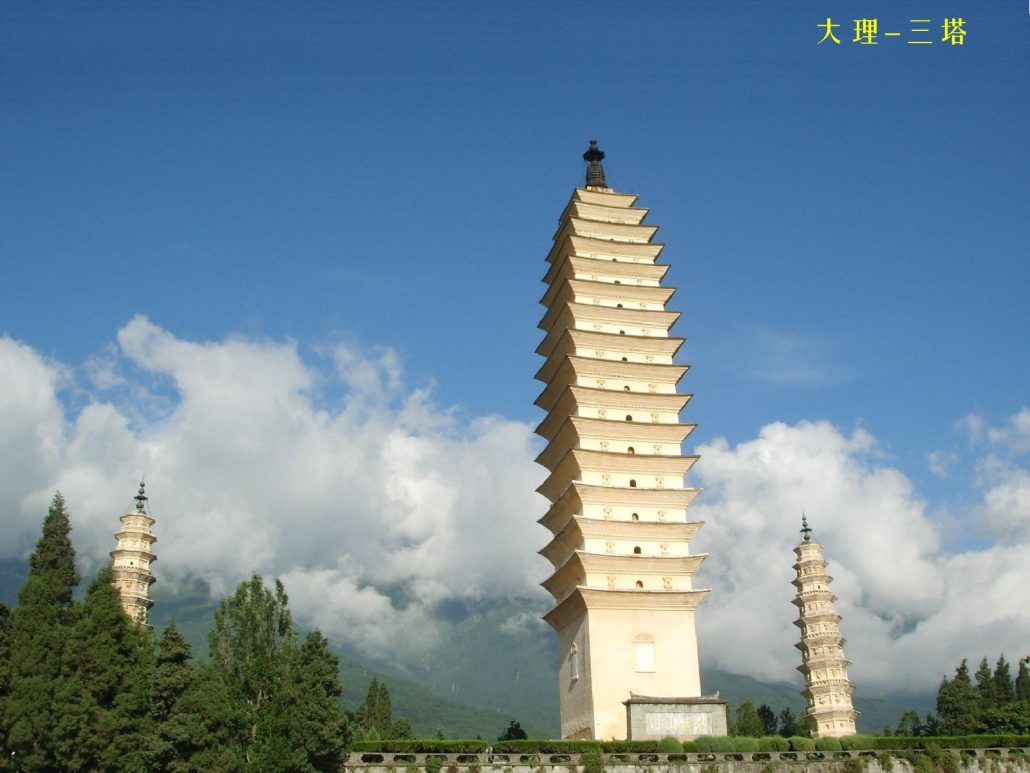 Одним з найстаріших будівель в південній частині країни, що дійшли до наших днів, стали 3 пагоди в храмі Чуншэнь, які розташувалися біля озера Эрхай біля міста Дали. Побудовані вони в унікальній для буддійських будов архітектури. Для їх зведення використовували цеглу білу глину, а зовні прикрасили візерунками. А дахи споруд виконані з міді.