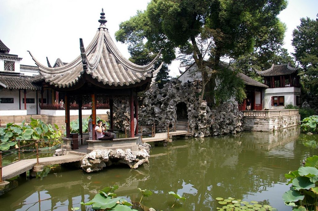 Розташовані сади в місті Сучжоу. Початок їм було закладено в XIV столітті заможними китайцями. Кожен з садів має озера з витонченими містками, галереї, альтанки, кам’яні гірки, колекції карликових дерев і ставки на яких ростуть лотоси.