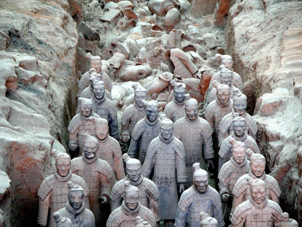 Коли Цинь Шихуанді було 13 років, він зайнявся будівництвом гробниці. У ті часи існувала традиція після смерті імператора ховати його разом з живою армією. Але радники Шихуанді вмовили його замінити живих людей на їх глиняні копії. У 1974 році селяни випадково виявили гробницю, в якій знаходилися статуї тисяч солдатів.
