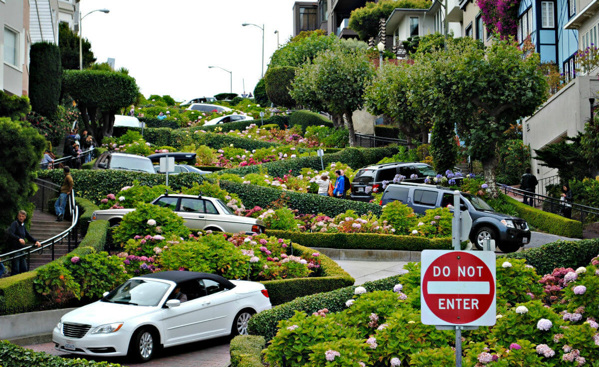 Коли будете в Сан-Франциско, обов’язково зайдіть на Ломбард-стріт, отримаєте незабутнє враження від дороги з божевільними поворотами-зигзагами, побудованими під великим нахилом, що змушує пересуватися машин дуже акуратно і повільно. Так само ця вулиця славиться своїми будівлями в вікторіанському стилі. Ломбард-стріт – це маса зелених насаджень і чарівних клумб.