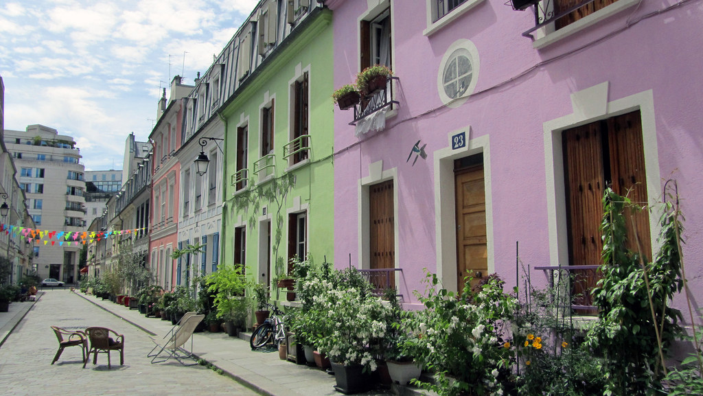 Франція. Париж. Коли потрапляєш на цю чисту вулицю, відчуваєш себе по-домашньому затишно. Ймовірно, це пов’язано з тим, що вулиця заставлена квітами в горщиках, а може з-за будинків, пофарбованих у різні кольори, з нанесеними на них зображеннями рослин і тварин.