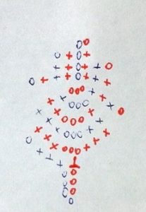 Зв’язати червоною ниткою гребінь і дзьоб за схемою.