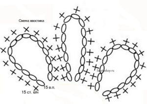 - хвостик: набрати ланцюжок з 15 ВП, обв’язати СТ б/н; зв’язати ще 2 петлі.