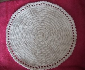 Для такого кола необхідно пров’язати 13 рядів і надбавку з ажурною обв’язки. В результаті повинен вийти коло, діаметр якого дорівнює 24 — 26 див.