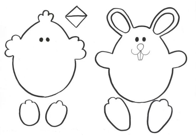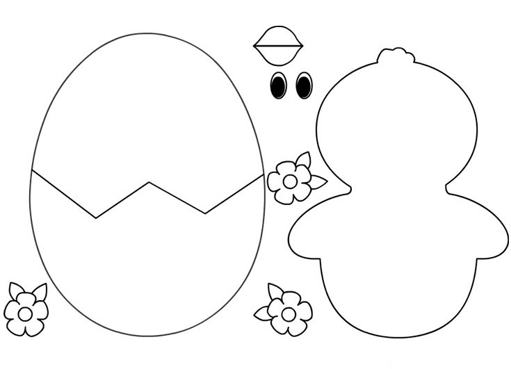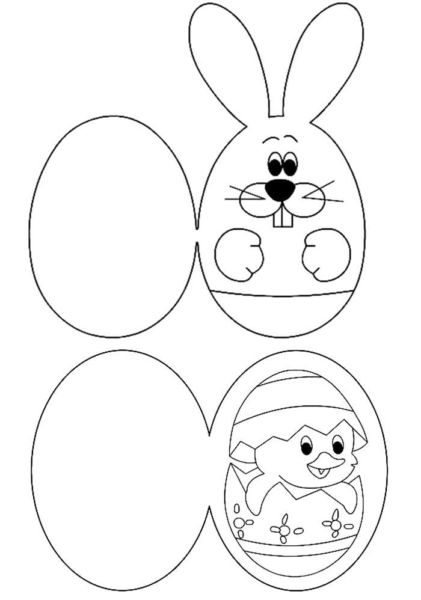 Ось такі забавні листівки у формі яйця можна створити за даними шаблонами в дитячий садок до свята Великодня, а діти будуть просто в захваті, адже вони так люблять таких маленьких желторотиков.