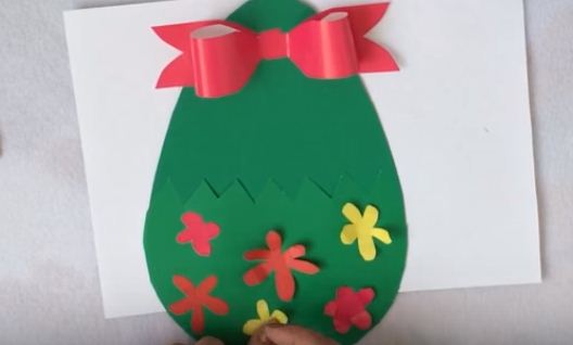 У верхній частині яйця наклеїв яскравий червоний бант.