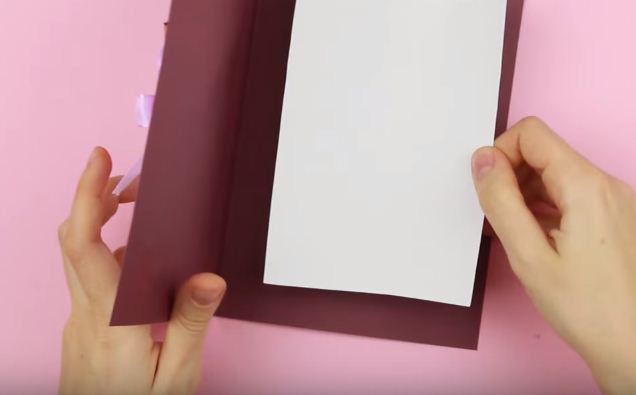 Всередину листівки вкладаємо аркуш, на якому можна написати побажання. І також прикріплюємо клеєм.