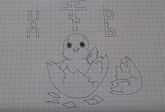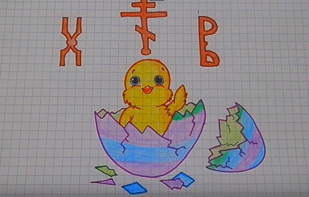 І вгорі композиції пишемо тематичну напис: ХВ, між літерами зображуємо хрест.