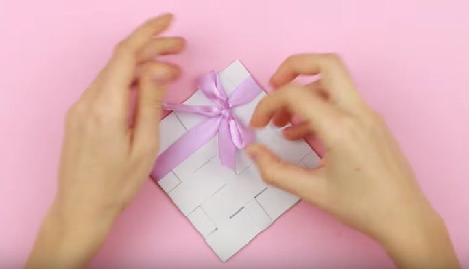 Під бантик прикріплюємо невеликий шматочок жовтого картону. На ньому можна написати коротке привітання.