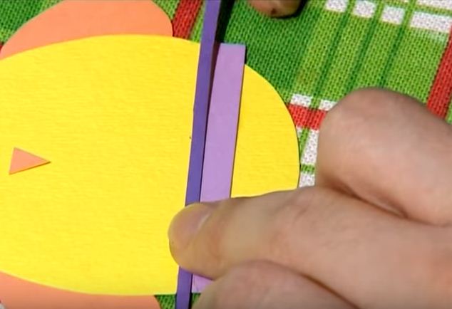 У нижній частині курчати прикріплюємо клеєм два різнокольорових тонких смужки.