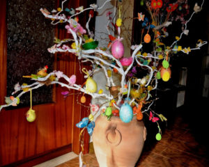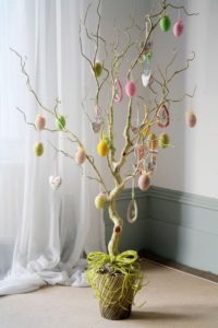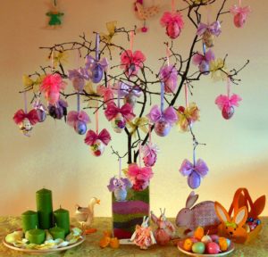 З часом звичка прикрашати садова рослина переросла у створення невеликих дерев з підручних природних матеріалів (або з використанням будівельних). Можна зробити масу великодніх дерев в горщику своїми руками.