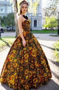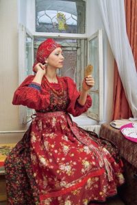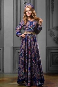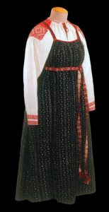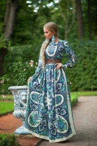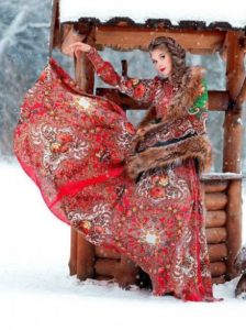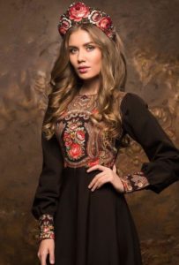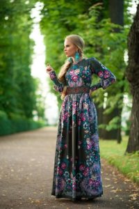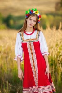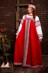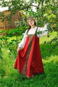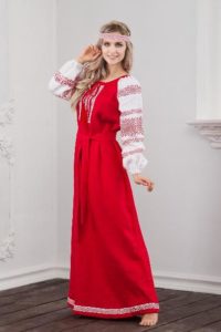 - для сукні в російському стилі не характерні глибокі вирізи на грудях: верх, як правило, закритий, проте це зовсім необов’язкове правило.