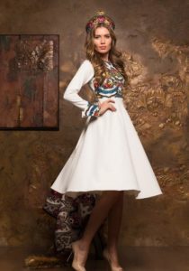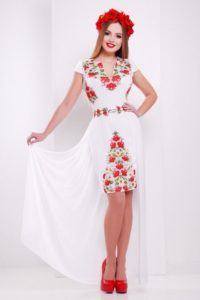 Цікаво та оригінально виглядають укорочені моделі суконь в українському народному стилі.