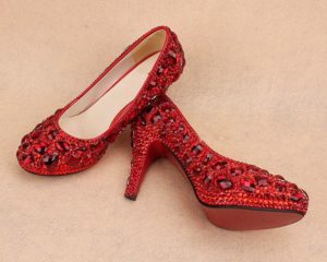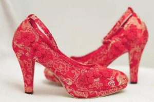 Якщо весілля проходить у теплу пору року, наречена може надіти червоні або білі туфельки на невеликому каблуці, балетки, босоніжки, прикрашені мереживами або стразами.