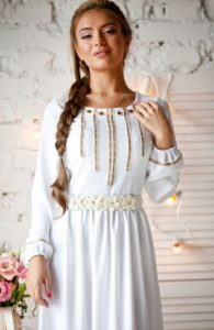 Білосніжна сукня в російській стилі з лаконічним дизайном: